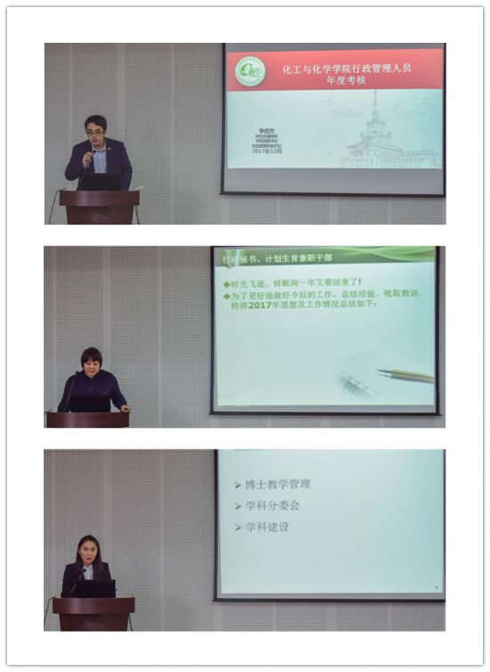 会上,学院办公室和学生工作办公室共14名教职工分别从2017年度个人学习和思想政治情况、履行岗位职责情况和年度完成的重点工作情况及存在的突出问题和改进措施进行了汇报。