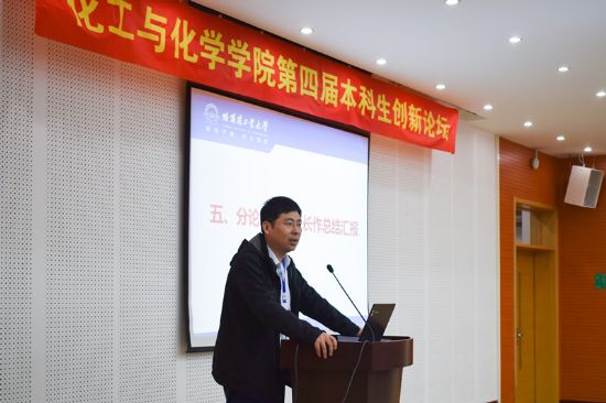 各分论坛中,每位答辩同学都作了精彩的展示,评委老师们耐心审核、悉心点评,与莘莘学子们碰撞出智慧的火花。经过学术报告、交流提问与评委点评等环节,本届论坛共评选出一等奖4名,二等奖8名,三等奖12名。闭幕式上,各论坛负责老师对各个分论坛情况进行了总结,学院党委副书记张旭老师、化学系副主任赵立彦老师,生物化工系副主任穆韡等为获奖同学颁发奖状并合影留念。最后,党委副书记张旭老师为本科生创新论坛致闭幕词。