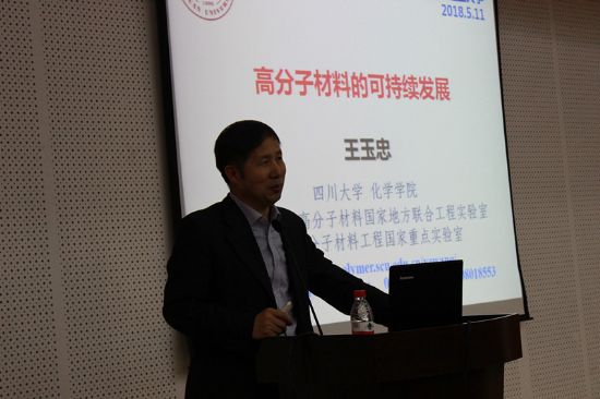 本次博士生学术论坛还邀请了中国工程院院士王玉忠教授作了题为《高分子材料的可持续发展》的报告。报告针对我国现在面临的“白色污染”和“黑色污染”环境问题,以及其解决办法做了全面的介绍。对如何解决高分子材料发展面临的环境与资源问题,做了深入的研究和探讨。站位高、观点新,受到同学们的热烈欢迎。