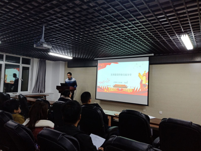 活动邀请了2017年度学院先进党支部成员吴建廷同学为大家开展经验交流分享。吴建廷同学围绕组织生活制度,从三会一课、谈心谈话、组织生活会和民主评议四个方面,详细讲述了党支部建设的经验,着重讲解了在建设优秀党支部过程中的经验和教训,并对18级党支部建设提出了一些建议。