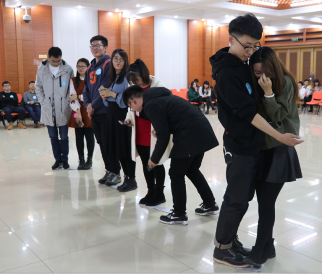 本次活动以问卷统计的形式确定参与活动人数确保男女比例均衡,以微信推送的新型自媒体形式为传播途径及渠道。活动设置“天生一对”、“爱的抱抱”、兔子舞互动、才艺展示、“一纸心梦”、“say you say me”、“这是你的一封情书”等主要环节。随着轻松甜蜜的开场乐曲 ,以浪漫温馨为风格的联谊活动准时开始。活动现场环节依次顺利进行从嘉宾进场领取号码牌和半封情书,男女嘉宾领取玫瑰,女生许愿板许愿环节,到开场歌手演唱主持人宣布开场。 从天生一对到不潮不用花钱,从互动舞蹈到个人才艺展示, 从一纸心梦到say you say me 的自由交流,以及最后的这是一封情书的彩蛋环节。可谓是环环相扣 、有条不紊 、循序渐进、 异彩纷呈。