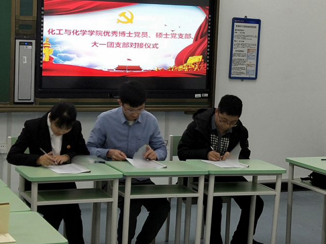 随后,优秀博士生党员代表、硕士党支部书记代表、大一本科生团支部书记代表现场签订对接承诺书。之后各代表进行发言,大一团支部团支书代表朱文慧表示感谢学院与学部对他们的关心与指导,表示将认真履行职责,努力抓好团员思想工作;2018硕士生党支部书记代表林强表示将按照学院要求开展硕士党支部与团支部的对接工作,创新方式方法,切实开展大一学生的入党启蒙教育;优秀博士生代表崔凯表示将深刻学习贯彻十九大精神,努力完成“1+1+1对接”工作,并积极参与硕士党支部与大一团支部对接活动,加强党团建设,不断发挥党员的先锋模范作用。