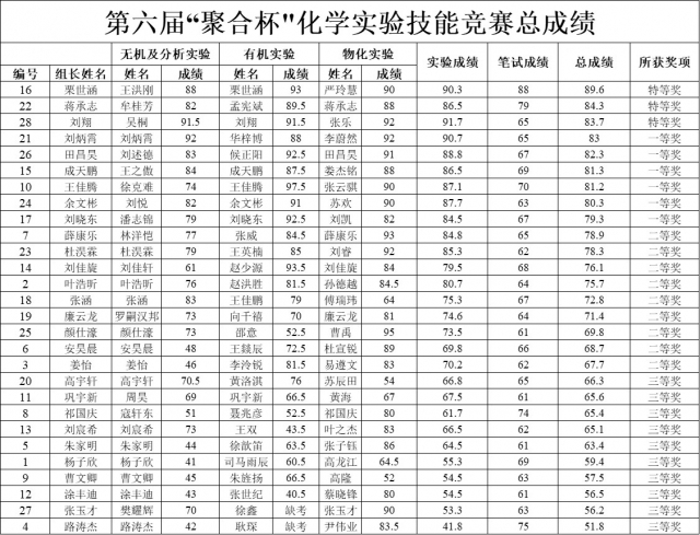 化学实验技能竞赛为广大学生提供了良好的技能竞技平台,进一步检验和锻炼了学生的实验技能水平。本届竞赛节历时半月之久,在拓展学术视野,提升实验技能,活跃学术氛围等方面起到了积极的作用。至此,太阳成tyc234cc第六届“聚合杯”化学实验技能竞赛圆满结束。