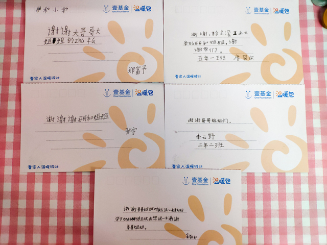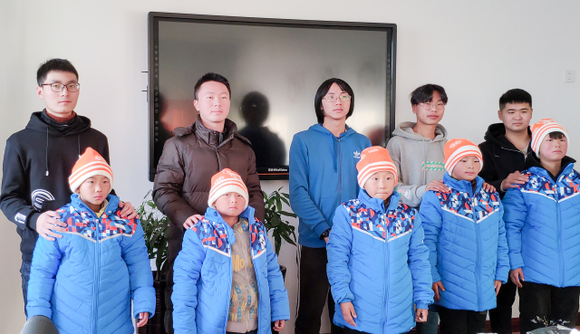 在课程结束后,志愿者们通过李主任的介绍,见到了此次接受“彩虹温暖包”五位家庭贫困的孩子,与他们进行了面对面的交流,面对这些大哥哥大姐姐,孩子们有些害羞,但志愿者们亲切的态度让孩子们敞开心扉,交谈在愉快的笑声中结束。随后志愿者们给孩子们送上了“彩虹温暖包”,孩子们当场穿上了羽绒服,戴上帽子。希望棉衣棉鞋能温暖这个寒冬,志愿者的爱能温暖孩子们的心扉。