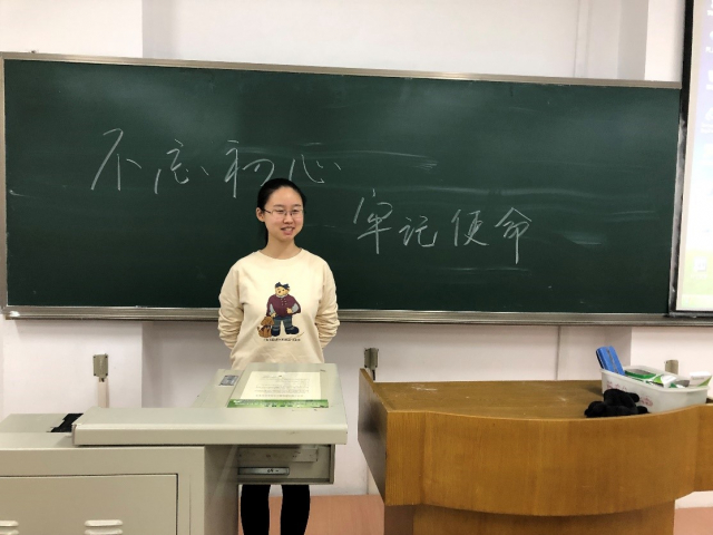 活动开始,全体同学起立唱国歌。同学们的歌声铿锵有力,体现了对祖国的热爱之情。随后,入党积极分子安昊晨和王之傲介绍了十九大上习近平总书记做的报告,重点讲解了党的十九大精神的政治意义、历史意义、理论意义、实践意义,希望帮助同学们准确完整地理解十九大精神,用以武装头脑、统一思想,指导工作、引领实践。接着,团支书许妍播放了爱国主义教育纪录片,回顾共产党的光辉历程,让同学们了解了中国共产党取得今天成就的不易。最后,同学们交流了自己的学习感悟与心得。