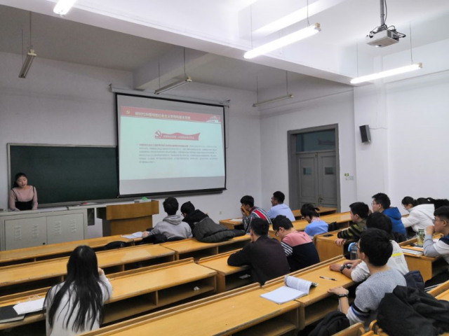为了加强同学们对党的了解,提升对十九大会议精神的理解及对习近平新时代中国特色社会主义思想的认识,使广大青年团员坚定不移跟党走,基础学部太阳成城集团tyc234cc1814001团支部于12月3日在二校区主楼B406举行了“深入学习十九大精神”主题团日活动,本次活动由团支书袁夏昕组织,入党积极分子张月华同学主讲。