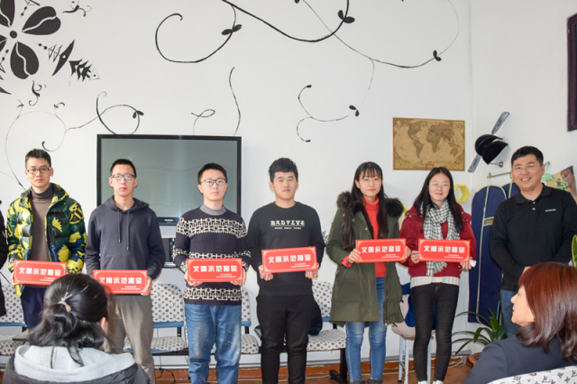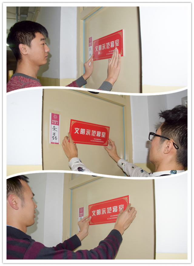 活动由辅导员曲帝吉主持,首先曲帝吉结合新下发的寝室文明公约的内容与室长们进行了详细地介绍。学院党委副书记张旭发言,张旭老师希望以此次“文明示范寝室”评比作为契机,激励更多的同学在学习生活中取得更大的进步,营造积极健康文明的寝室生活,坚决杜绝寝室卫生差,沉迷游戏等不良现象。赵越老师希望各宿舍在保持寝室卫生良好的同时,要注意营造“互相监督,互相帮助”的学习氛围。周颖老师在感谢同学们认真配合公寓管理工作的同时祝福同学们今后取得更大进步,公寓管理中心也会想同学之所想,急同学之所急,及时有力地解决学生反馈的各项寝室难题。最后,张旭老师和周颖老师向获得“文明示范寝室”称号的室长们颁发了门牌并合影留念。