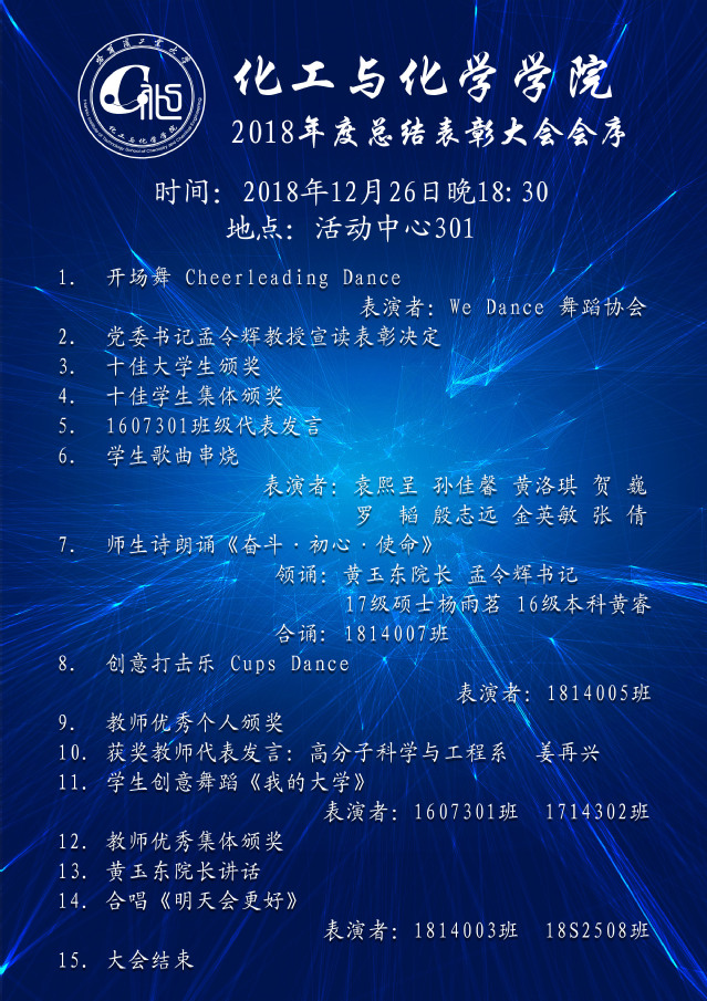1、请所有师生18:15入场完毕,有序就座;