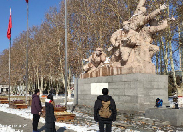 2月15日早,小组成员出发前往石家庄华北军区烈士陵园。华北军区烈士陵园位于河北省石家庄市,占地面积21万平方米,是1948年秋经朱德提议,为了纪念牺牲在华北大地上的革命烈士而修建的。烈士纪念馆1954年建成并对外开放,是我国兴建较早、规模较大、建筑规格较高的烈士陵园之一。园内安葬着历次革命战争时期牺牲在华北地区的318位革命烈士,安放着新中国成立后牺牲的革命烈士和病故的老红军的骨灰。华北军区烈士陵园为全国爱国主义教育示范基地、国家国防教育示范基地。小组抵达石家庄华北军区烈士陵园,先后参观陵园内早期工人运动领导人高克谦、回民支队司令员“民族英雄”马本斋、伟大的国际主义战士诺尔曼·白求恩等革命英雄雕像。