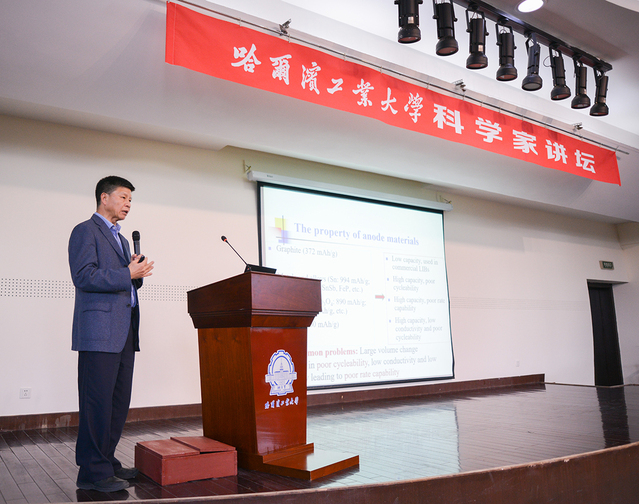 哈工大报讯(霍华/文 黄聪/图)3月8日下午,中国科学院院士、我国电化学领域主要学科带头人之一、厦门大学化学系孙世刚教授做客科学家讲坛,为师生带来题为“离子电池材料结构设计和性能调控”的专题讲座。副校长安实会见孙世刚院士并为他颁发“科学家讲坛主讲嘉宾”聘牌。