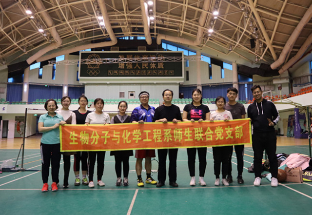为增强党支部战斗堡垒作用,丰富党支部文化生活,加强党支部密切联系群众,培养党支部师生积极进取、勇于拼搏的优良品质,3月19日晚5:30,在新学期第一个“党员活动日”,生物化工系师生联合党支部举办的羽毛球友谊赛在体育馆成功举办,支部成员十余人参加。