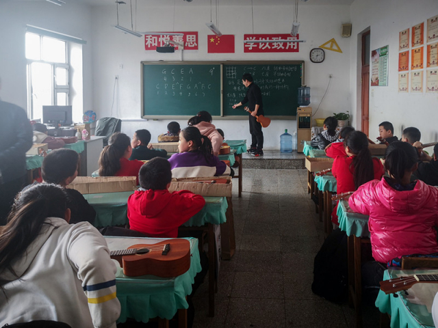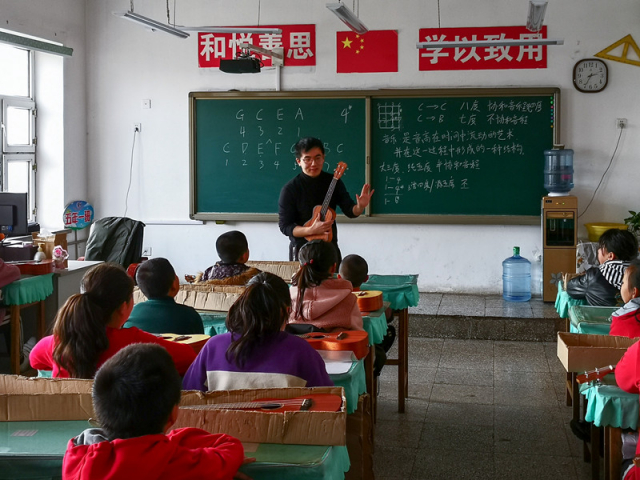 太阳成城集团tyc234cc爱之翼志愿者协会选拔学生党员、学习成绩优异和有艺术特长的学生,成立了“香和小学彩虹支教团”,在校院两级团委的指导和支持下,开展支教和志愿服务活动。志愿者们于12点40分从学校出发,于1点30分到达香和小学,志愿者们到达香和小学后,经过简单的准备,便开始了此次授课。课堂开始,陈倚孝同学首先带领五年一班的学生进行了简单复习,回顾了一下上节课所学习的简单基本知识。接下来,陈倚孝同学为同学们发了调音器,让大家自行练习尤克里里调音的基本操作,学生们热情高涨,积极配合志愿者老师,完成了自己的尤克里里的调音。之后,两名志愿者带领大家用调好的尤克里里练习了上学期学习的基本音节。一节课的时间很快就过去了,学生们非常热情地表达了对志愿者们的感谢。