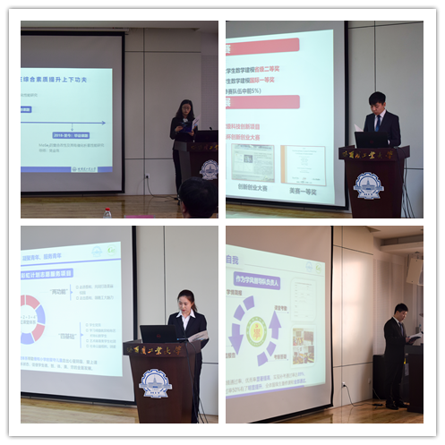 在优秀个人的竞选中,参加竞选的同学展示了在学习成绩、学生工作、社会实践、志愿服务、科技创新等方面的成果。尤其是李尚松同学,学分绩位列专业第一,多门考试课成绩接近满分;张雪松同学作为学生会主席,组织开展啦啦队大赛、动感嘉年华、本科生创新论坛等大型活动20余场。