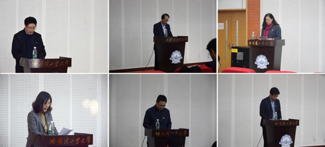 党委书记孟令辉首先代表院党委班子作了报告,并进行了个人述职述廉。在述职报告中,孟令辉总结了一年来学院党委履行基层党建工作责任情况、重点任务完成情况、思想政治工作情况、党建工作存在的突出问题以及加强和改进工作的思路措施,并详细汇报了自身理论学习、履职尽责、服务师生等情况。院长黄玉东作了2019年度院领导班子述职报告,并就个人情况进行了述职述廉。他在报告中总结了一年来学院在学科建设工作、人才培养工作、师资队伍建设、科研工作、国际合作交流及平台建设等方面取得的成绩,就上一年度突出问题的整改落实情况作了说明,并分析了下一年度学院的重点工作任务。随后,副院长卢卫红、吴晓宏、杜春雨,党委副书记杨云峰分别作了个人述职述廉报告。