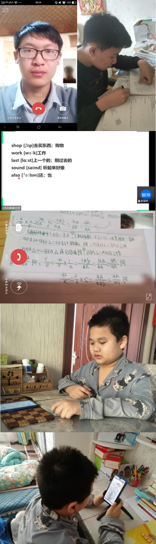 杜艳伟、王滋毅同学借助微信视频网络平台,分别辅导了杨同学和葛同学。志愿者精心挑选了一些有代表性的数学习题,使两位同学在图形认知,函数学习等方面有更清晰的认识。其中杜艳伟同学还针对化学沉淀溶解平衡的知识点作了总结,为两位同学备战中考增添助力。江杰同学借助腾讯会议网络平台并结合精心准备的PPT,为杨同学同学讲解新学期语文课文并分享了自己对于记忆英语单词所总结的秘诀。为杨同学新学期开学打下了良好基础。