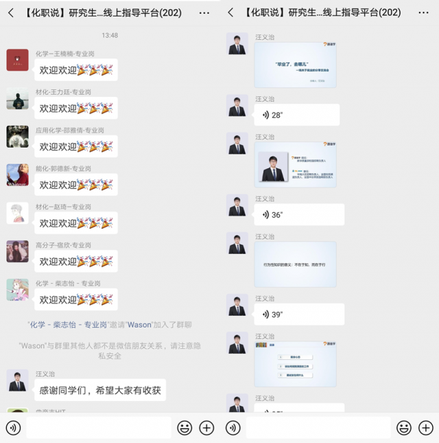 “化职说”研究生求职线上指导第一期主讲嘉宾跟谁学招聘经理汪义治先生从“就业心态、该如何找到满意的工作、面试官在问什么”这三个方面进行展开,强调找工作过程中要始终保持自信心,要“认识自己,认清现实。但是你要记住:你其实很优秀”,他从面试的不用形式以及考察内容、面试中需要get到的点等方面进行分享,对面试中常常涉及到的STAR原则作了详细的诠释。第二期主讲嘉宾蓝月亮(中国)有限公司校园招聘中心负责人许莉莉女士从“疫情背景下的远程面试如何破解、如何提高校招网申的通过率”等方面进行展开,强调要做好面试准备,提前进入面试平台,测试设备的稳定性,保持仪容的整洁,在面试过程中主义形象礼仪、仪态礼仪、谈吐礼仪等。特别是自我介绍的时候,要发掘自己的闪光点,给面试官留下深刻的印象。第三期主讲嘉宾宁德新能源招聘经理彭宁女士从求职简历制作方法、简历制作的加分项等进行展开,提醒同学们,要达到简洁严谨、有针对性、真实客观这三个基本原则,还分享了一些简历制作的加分项,比如要根据目标职位定制简历,写清意向岗位;按照倒序时间来进行描述;主次分明,多用客观定量描述等。