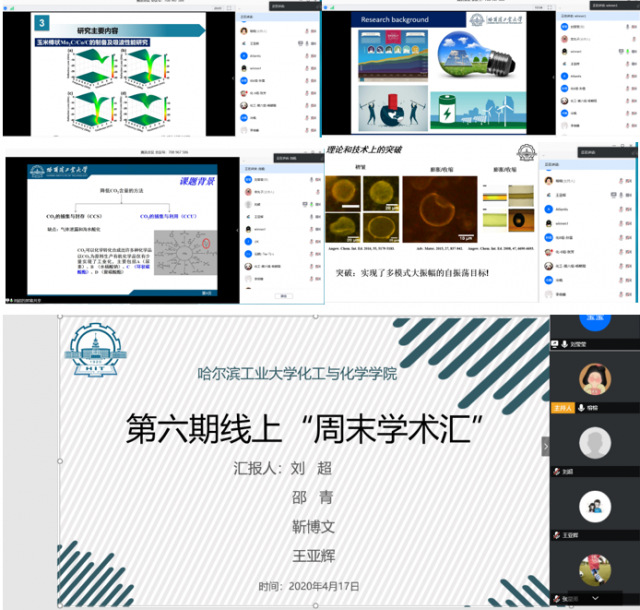 为坚决贯彻中央、省委和学校党委关于打赢新型冠状病毒感染的肺炎疫情防控阻击战决策部署,保障疫情防控期间博士研究生教育培养质量,充分服务好疫情防控期间博士生学术交流与科研创新的需要。2020年4月17日晚,太阳成城集团tyc234cc博士生党员工作室组织的研究生第88期“周末学术汇”学术交流活动成功举办(线上第6期),本期主题“特种材料及催化剂的研究与制备”。共有4位不同研究方向的博士研究生分别介绍了自己的研究成果,并向大家分享了自己科研工作方面的经验,12名研究生同学在线收听收看本期“周末学术汇”。
