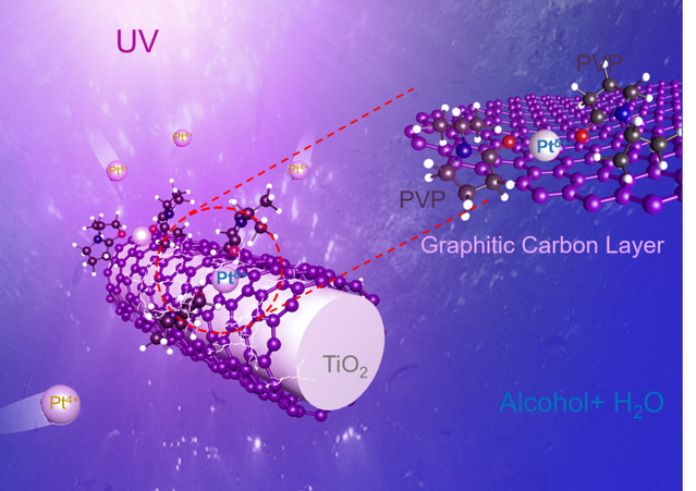 图1 光化学还原构建PVP配位Pt单原子活性中心的形成机理示意图