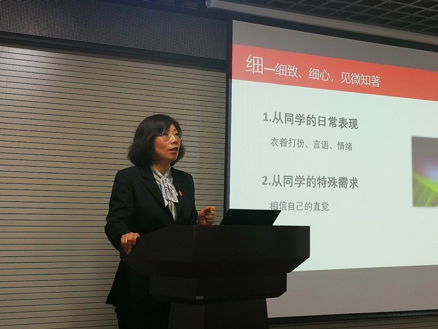 最后,王倩作了题为《心理育人,做温暖的教育者》培训,从“谈、细、慧、稳、度”五点工作思考,与班主任交流如何在未来的工作中掌握正确方法,做好谈心谈话等相关工作。