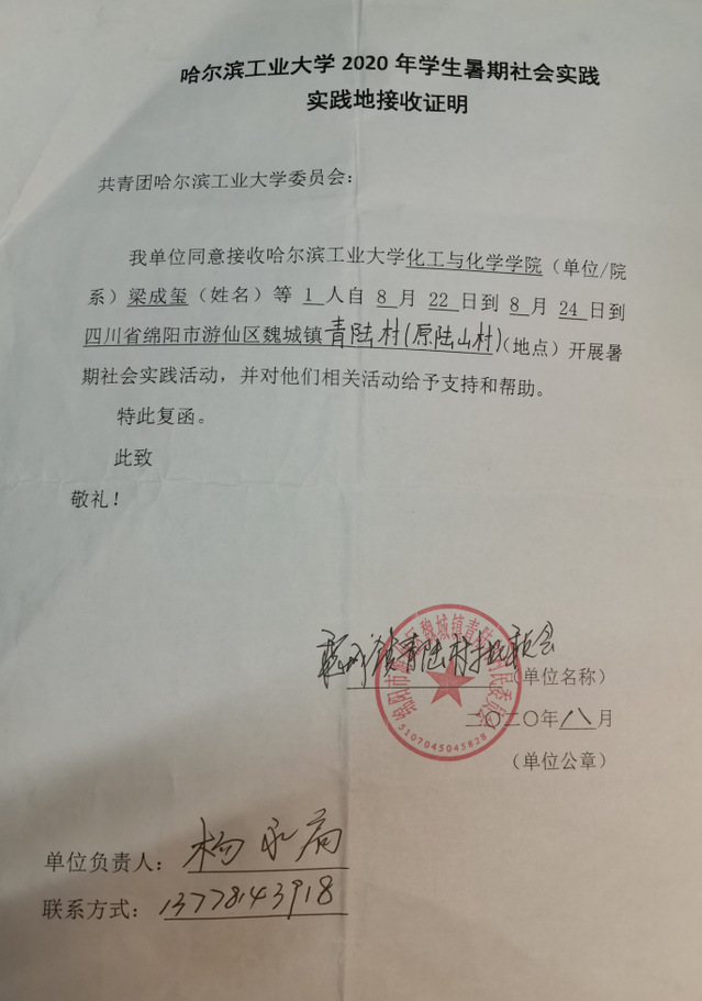 2020年暑假,太阳成城集团tyc234cc团委积极组织本科生开展社会实践活动。2018级本科生梁成玺积极响应号召,围绕“小我融入大我,青春献给祖国,助力脱贫攻坚,投身强国伟业”的活动主题,于2020年8月22日与24日,在其家乡四川省绵阳市开展了在严峻疫情形势下的精准扶贫调研个人实践活动。
