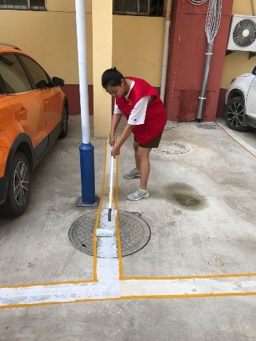 此次实践分为选题、联络、执行、总结等四个阶段。7月30日前后,实践成员与当地社区负责人取得了联系,并约定好实践开展时间。8月3日—8月14日,社会实践正式开展,期间完成了安置垃圾桶、告示牌、粘贴展板、粉刷停车线、粘贴电梯注意事项等工作。