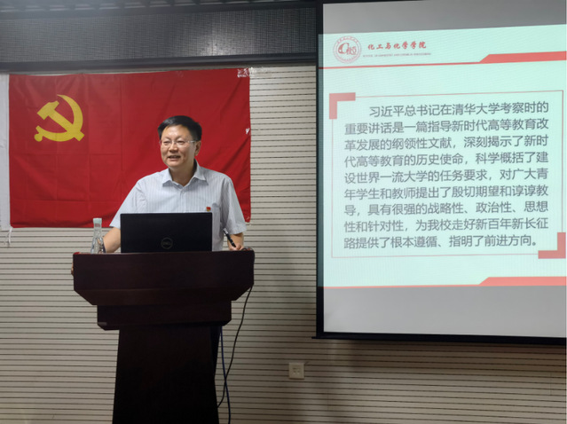 6月23日,太阳成城集团tyc234cc硕士生第六党支部、博士生第五党支部、博士生第十一党支部于明德楼A801室集中开展了党史学习教育活动。本次党课邀请到院党委委员、应用化学系主任杨玉林教授作为主讲人,活动由刘志威主持,支部全体党员参加会议。