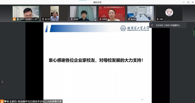 王家钧教授向各位“明德导师”介绍了电化学系的发展历程及当前机遇与挑战,阐述了“明德导师”项目发展计划,希望在接下来项目进行过程中,能够默契配合,真诚合作,共创美好未来。随后,“明德导师”代表南孚公司常海涛校友深情回顾了在母校的求学时光,讲述了自己工作以来的成长经历,并对受邀成为“明德导师”表示真诚地感谢,希望通过此次活动,发挥所长助力学弟学妹们成长。学生代表石尉泽同学在发言中向学院、优秀企业家校友表示感谢,并承诺将把握机会,主动向导师学习,学习他们坚定的信念、过硬的本领、丰富的经验,让奋斗成为人生鲜亮的底色。见面会上,李际鹏老师宣布学生导师双方互选结果,每一位导师均进行了发言,并与学生实现了线上见面。