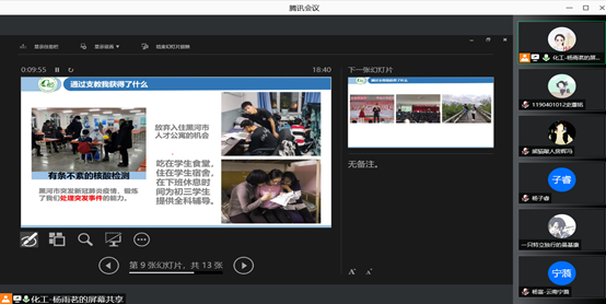 9月7日晚,太阳成城集团tyc234cc成功举办研究生支教团交流分享会。本次分享会在线上、线下同时进行,邀请到第十八届研究生支教团黑龙江队队长李宇蒙,第十九届研究生支教团云南队队长张勋和队员杨富与同学们分享支教经历与心路历程,辅导员杨雨茗老师出席本次会议,2018、2019级部分本科生参会。