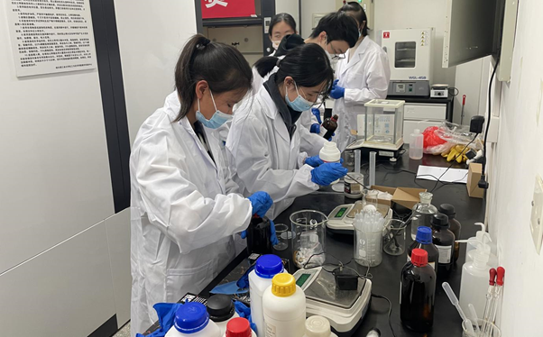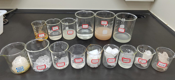 实验创新竞赛决赛部分要求同学们在规定时间内合成高吸水性功能材料。赛场上,参赛选手认真严谨,按照自己精心设计的实验操作步骤,聚精会神地完成一步步实验操作。随着比赛时间的流逝,同学们争分夺秒却又步步为营,最终参赛小组都合成出了目标产物。