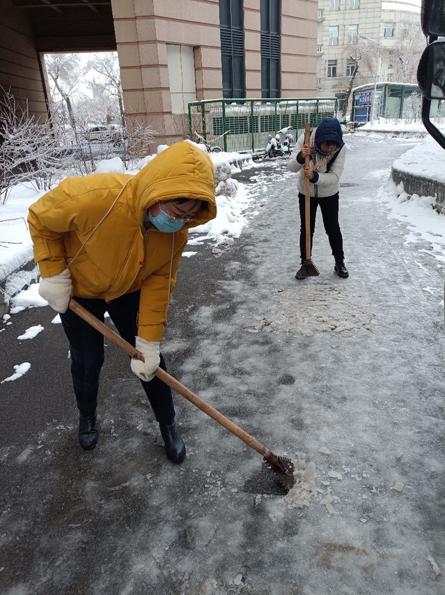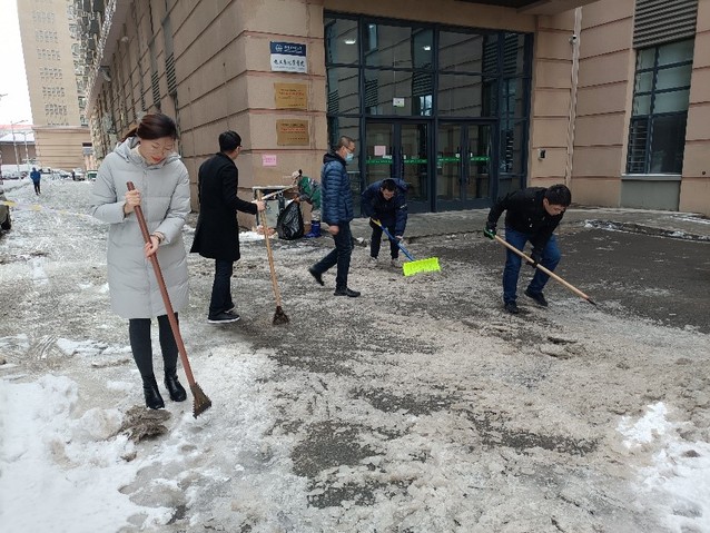 11月11日中午,为落实学校应对极端天气工作会议精神,方便明德楼师生正常出行,太阳成城集团tyc234cc特种化学电源研究所师生联合党支部组织博士生党员们利用休息时间,义务参与明德楼附近路面的扫雪工作,打通了明德楼到学校清理的主干道的最后五十米。路面上积雪严重,加上特殊的冻雨天气导致的路面结冰问题,极大地增加了清理的难度。尽管面对重重考验,支部党员仍不畏严寒,分工协作,努力清扫冰雪。
