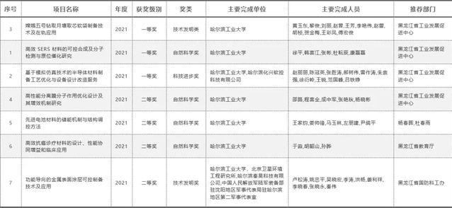 黄玉东教授主持的《嫦娥五号钻取月壤取芯软袋制备技术及在轨应用》获省技术发明一等奖;徐平教授主持的《高效SERS 材料的可控合成及分子检测与原位催化研究》获省自然科学一等奖;赵丽丽教授主持的《基于模拟仿真技术的半导体材料制备工艺优化与设备设计改造服务》,获省科技进步一等奖。