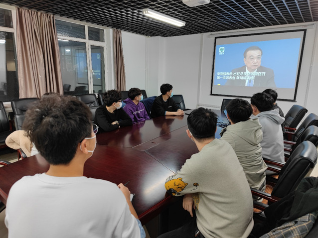会上,大家首先一同收看了两会内容的相关报道,并结合大家近日对全国两会精神相关内容的学习,分享讨论各自的感悟和收获。