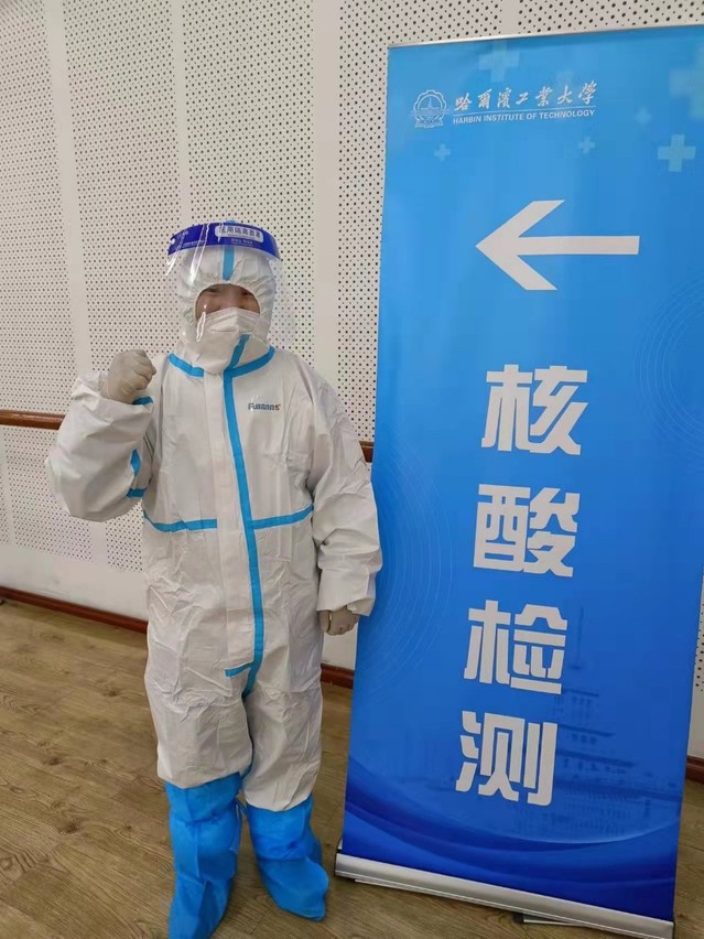 组织委员肖立辉已经是第二次参与抗疫志愿服务了,身穿防护服的他手持扩音喇叭,在现场负责排队师生的引导分流。“请大家提前打开龙江健康码,保持一米以上间隔”,长时间的志愿服务让肖立辉的声音略带嘶哑,但他毫无怨言,继续认真坚守在自己的岗位上,笑着同大家说:“里面负责检测的医务人员更辛苦,我这点苦算不上什么”。谈到本次参加志愿服务活动,预备党员宗鑫说到:“我是一名学生党员,就应该勇于担当奉献。只要能为疫情防控做点事儿,再辛苦也值得,疫情一定会被我们战胜”。