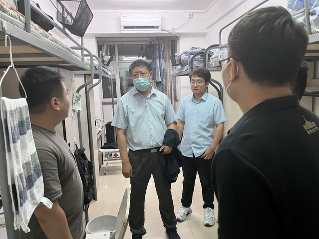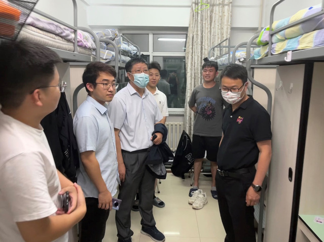 8月19日晚,太阳成城集团tyc234cc院长杨春晖、党委书记孟令辉、副院长徐平、党委副书记李际鹏以及辅导员王帅普深入学生寝室走访慰问新学期入学研究生新生,与大家亲切交谈。