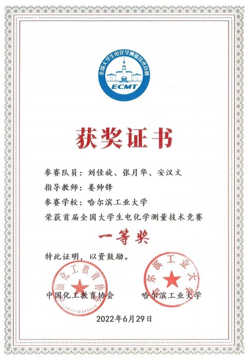 本次赛事以“电化学测量技术的应用与创新”为主题,积极响应国家创新驱动发展战略,服务推进国家级一流本科专业和新工科建设,加强产教融合实践教学,激发大学生在电化学测量技术方面的创新精神和创业能力。大赛累计有118所院校的690支队伍、1700多名同学积极报名参赛,我校刘佳旋团队获得唯一一等奖。