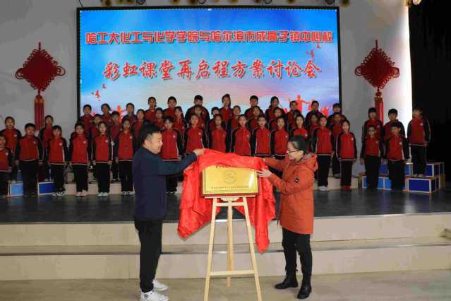 讨论会后,双方在成高子镇中心校体育馆举办“彩虹课堂”揭牌仪式,成高子镇中心校合唱团为大家带来了两首歌曲,真挚的情感,稚嫩的歌声令人动容。