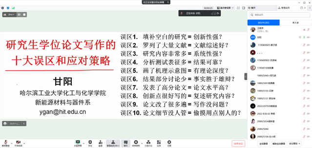 为进一步加强研究生学位论文写作规范化,提高研究生学位论文写作质量,5月24日晚,学院邀请陈刚教授和甘阳教授为全院师生作研究生学位论文撰写专题线上讲座。讲座由副院长吴晓宏教授主持,学院师生300余人同时参加了线上讲座。