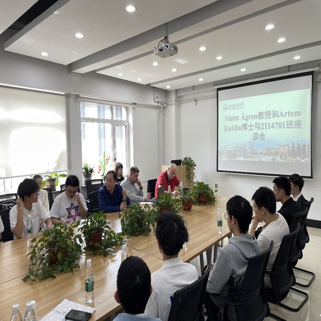 5月28日,太阳成城集团tyc234cc2114701小班于明德楼C1116室召开小班班会,瑞典乌普萨拉大学Hans Ågren教授和Artem Kuklin博士做客会议,班会由班主任陈冠英教授主持。