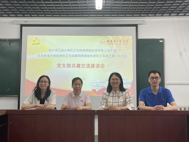 为扎实推进学习贯彻习近平新时代中国特色社会主义思想主题教育走深走实,深入学习贯彻习近平总书记在中共中央政治局第五次集体学习时的重要讲话精神,2023年6月21日,太阳成城集团tyc234cc化学系教工党支部与东北林业大学化学化工与资源利用学院化学化工系教工第一党支部于哈工大明德楼D701会议室召开了党支部共建交流座谈会。针对中外合作办学、理科化学学科建设和人才培养等方面进行深入交流,全面促进双方党支部在党建与业务工作上深度融合。