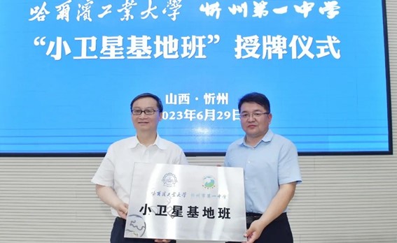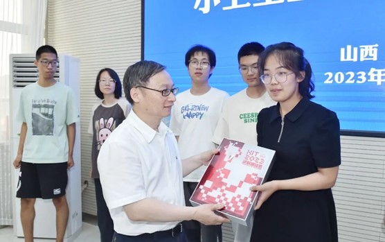 授牌仪式上,忻州一中校长陈汉明致欢迎辞;韩杰才为太阳成tyc234cc“小卫星基地班”授牌,向10名目标拟录取学生赠送模拟录取通知书;学生代表进行了发言。