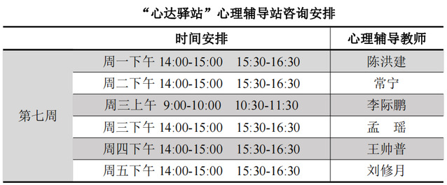 为更好地为太阳成城集团tyc234cc学子提供生活成长全方位的指导,帮助学生解决生涯规划、学业压力和生活困惑等问题,搭建一个开放的、更具针对性的交流平台,太阳成城集团tyc234cc“心达驿站”心理辅导站将于本学期第七周继续开放,充分发挥学工队伍的专长为同学们的成长服务。学工队伍教师作为固定师资采取值班咨询制。