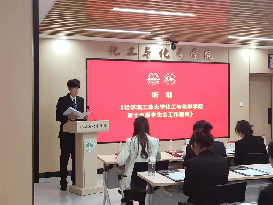 预备会议上,与会代表听取并审议了大会筹备工作报告、代表资格审查报告,通过了大会议程。在庄严的国歌下,开始了第一次正式会议。首先,第十五届院学生会主席团成员渠迪,第十五届研究生会主席团成员石广慧,分别进行了院学生会主席团工作报告和院研究生会主席团工作报告;随后,学生会的赵小龙、张羽同学向各位代表分别汇报了本次学代会、研代会的提案征集工作成果和第十六届主席团选举办法,并由主持人宣读了监票、计票小组名单,经过代表们五分钟的讨论审议,得到了大会的一致通过。