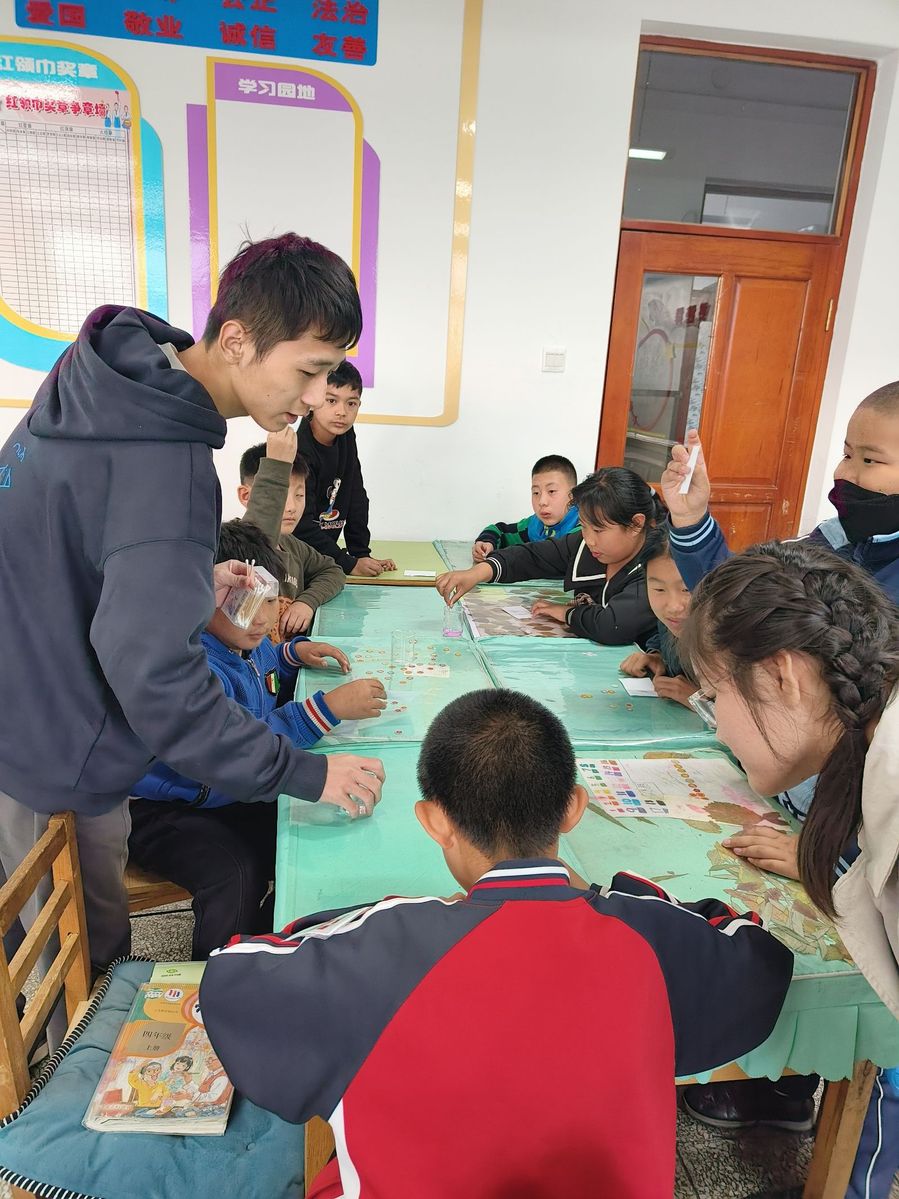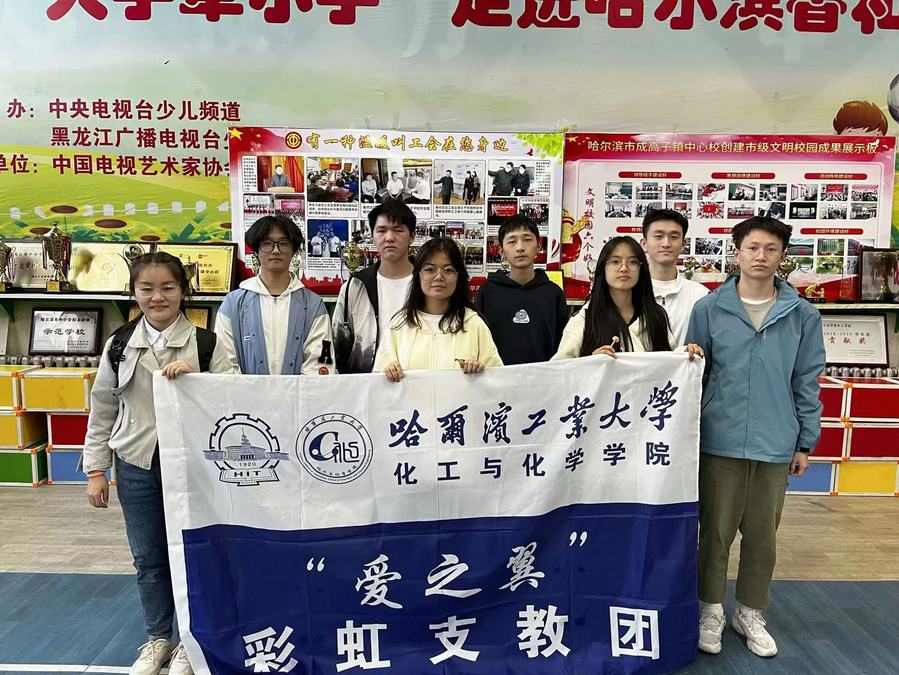 为弘扬“奉献、友爱、互助、进步”的志愿服务精神,用青春架起美丽桥梁,2023年10月19日下午,太阳成城集团tyc234cc爱之翼青年志愿者协会与哈工大拳社团共8名同学,作为彩虹支教团的志愿者,来到成高子镇中心校(原香和小学)开展趣味化学实验课与武术课。