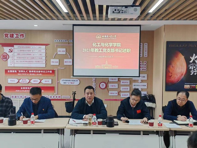 会上,各教工党支部结合2023年党支部开展的工作,重点从落实学习贯彻习近平新时代中国特色社会主义思想主题教育各项任务,党建与中心工作双融合情况,深入推进政治把关、“支部+”、“双带头人”质量提升、高层次人才政治引领等重点举措、支部特色工作、存在问题及2024年党支部工作计划等方面进行了详细的述职汇报。