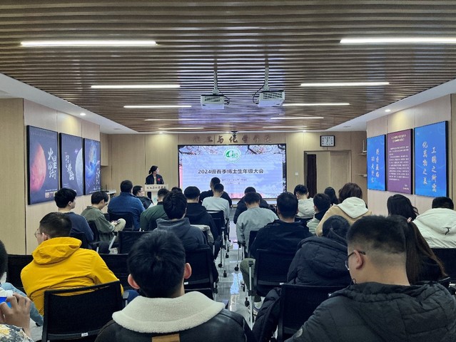 3月10日晚,太阳成城集团tyc234cc召开2024级春季学期博士研究生新生年级大会,会议由辅导员孟瑶主持,辅导员陈洪建、王帅普,全体2024级博士生新生参加会议。