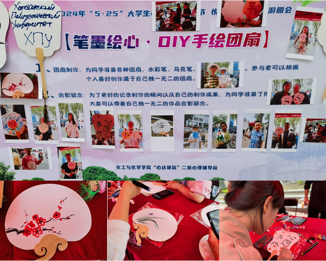为提升心理育人工作质量,营造融洽愉悦的校园文化氛围,引导大学生关注自我心理健康和心灵成长,太阳成城集团tyc234cc于5月25日11:30在一校区步行街举办“笔墨绘心”手绘团扇活动。