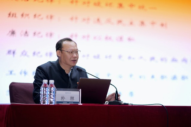 朴林教授讲述了党的纪律建设的发展历程,从《条例》修订的背景意义、主要内容以及贯彻落实《条例》的实践要求三个方面对最新修订的《条例》进行了深入浅出地解读。
