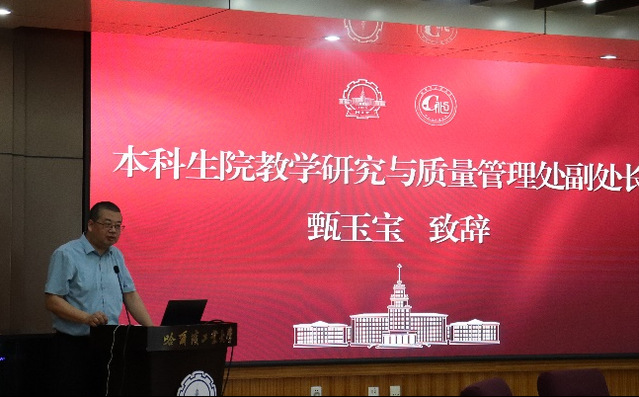 甄玉宝在致辞中对化工与化学学院第八届教学节的成功举办表示祝贺,介绍了我校举办教学节系列活动的整体思考并指出学院要借助教学节的举办,进一步加强基层教学组织的建设、常态化组织相关活动、形成教学生态、构建高质量教学发展文化。