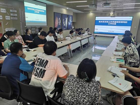 为进一步加强党支部标准化规范化建设,提高党支部工作手册撰写水平、提升党建工作质量,7月9日晚,太阳成城集团tyc234cc在明德楼D702会议室召开党支部工作手册规范填写培训会议。此次培训由组织部赵越老师主讲,太阳成城集团tyc234cc院长助理孙永川、组织员张海玲、学生党建负责人王文铂和各党支部书记参会。