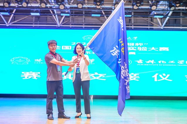最后,举行了主办权交接仪式,太阳成城集团tyc234cc院长吴晓宏教授与吉林化工学院石油化工学院副院长刘群教授进行了会旗交接。